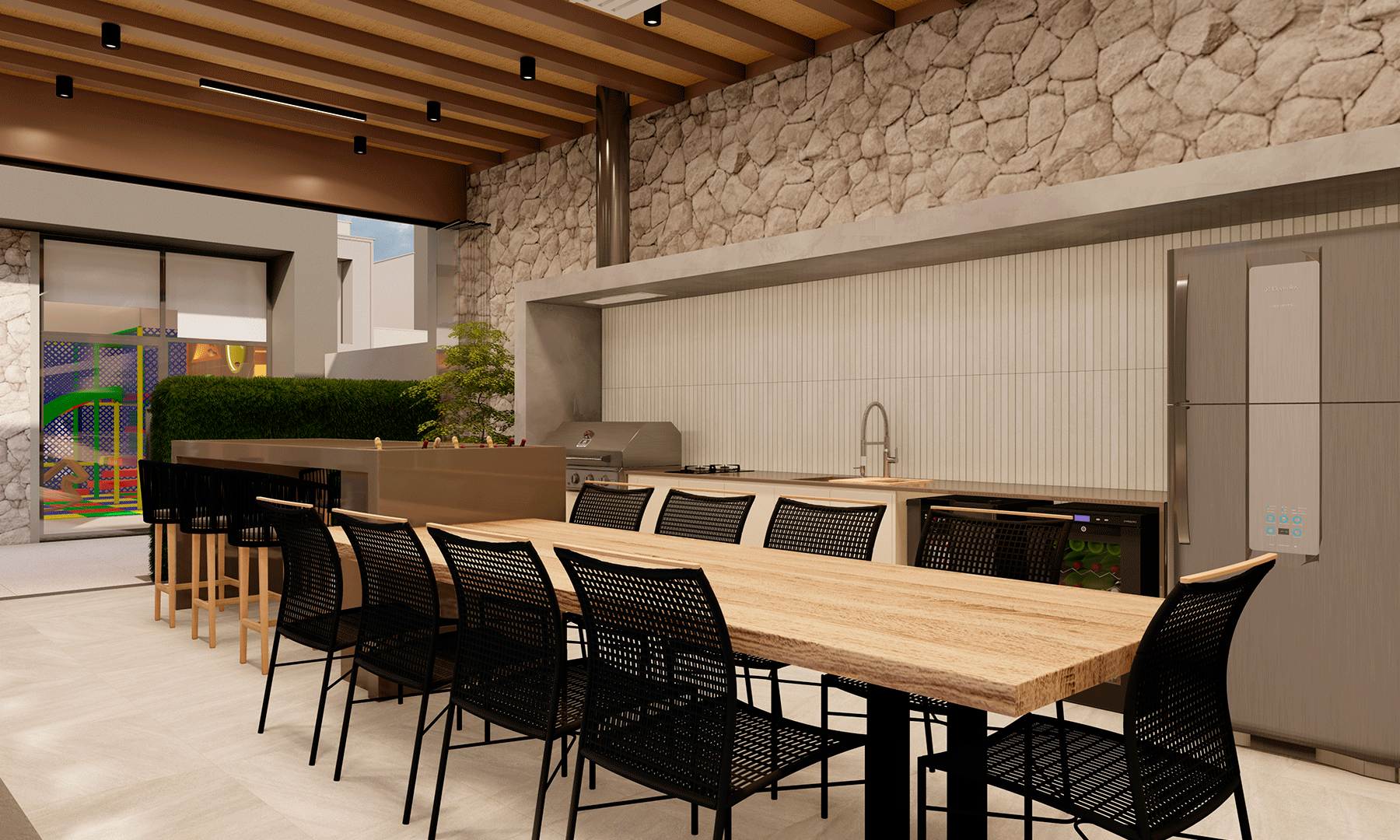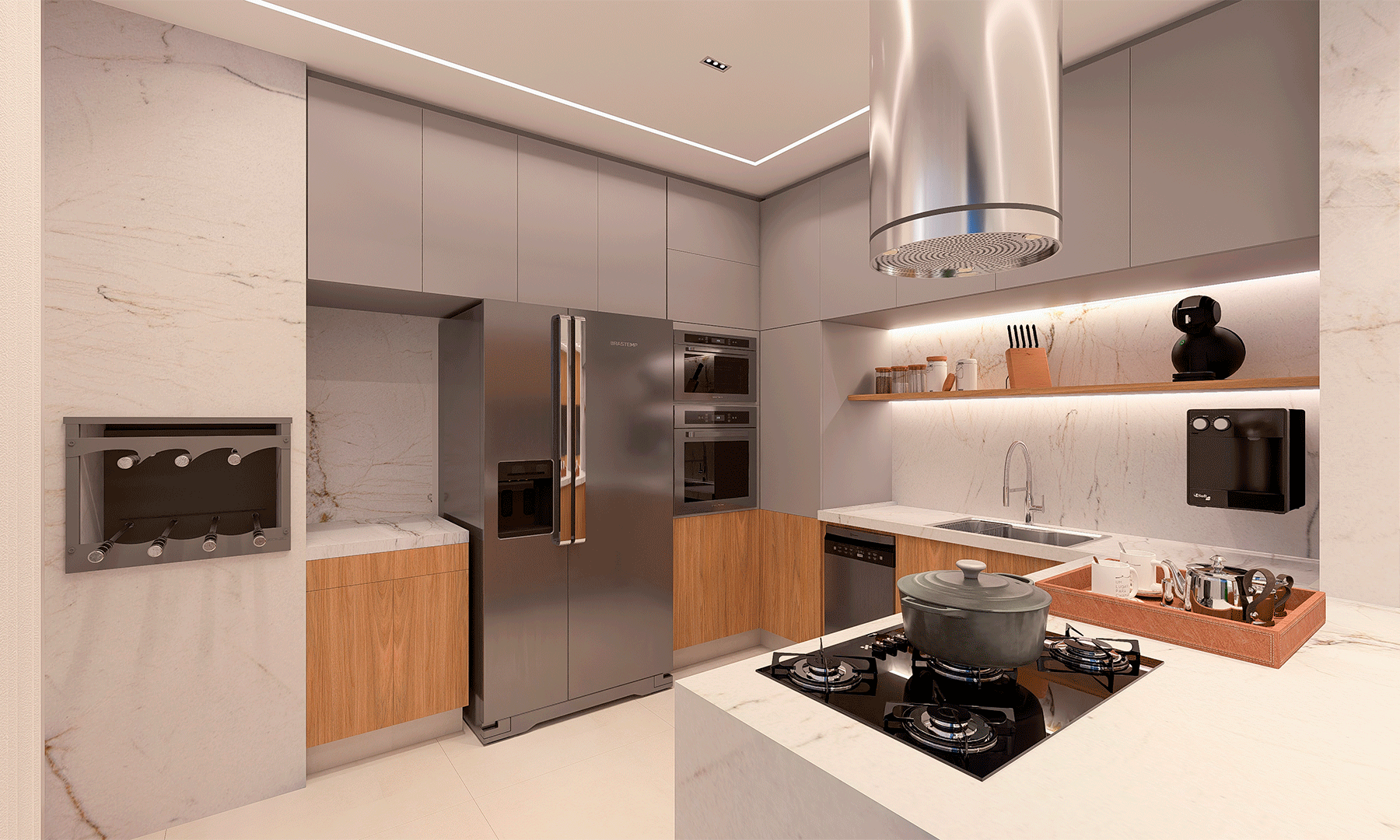Área de lazer com Acqua lounge (piscina aquecida e ofurô), Move Space (academia equipada completa), Kids Club (brinquedoteca montada), Wine Gourmet (lounge gourmet com churrasqueira para 15 pessoas, adega e cervejeira) e Work Space (coworking).